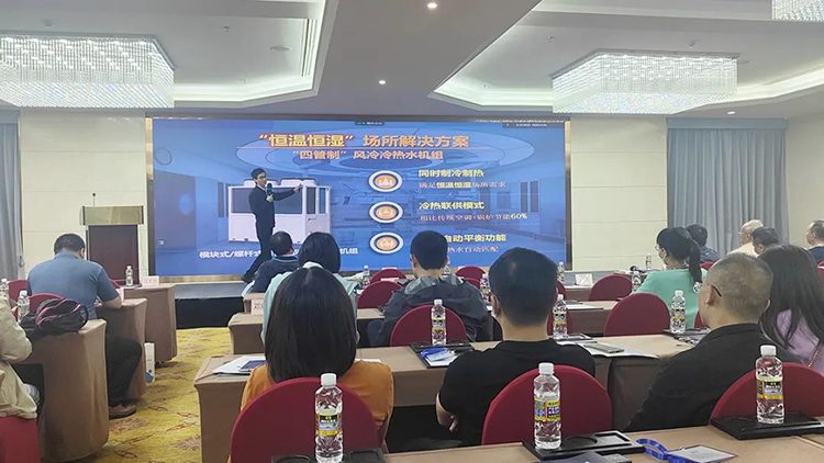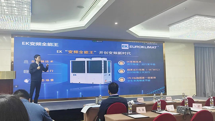 作為行業(yè)領先的中央空調系統(tǒng)集成商和服務商,EK空調產品經理陳旭金在會上發(fā)表了《EK四管制冷熱水機組及變頻模塊解決方案》的主題演講,和現場嘉賓分享了EK四管制在醫(yī)院手術室、游泳館、檔案館、博物館等“恒溫恒濕”場所的應用,以及EK變頻模塊的優(yōu)勢特點、應用案例、應用場景。